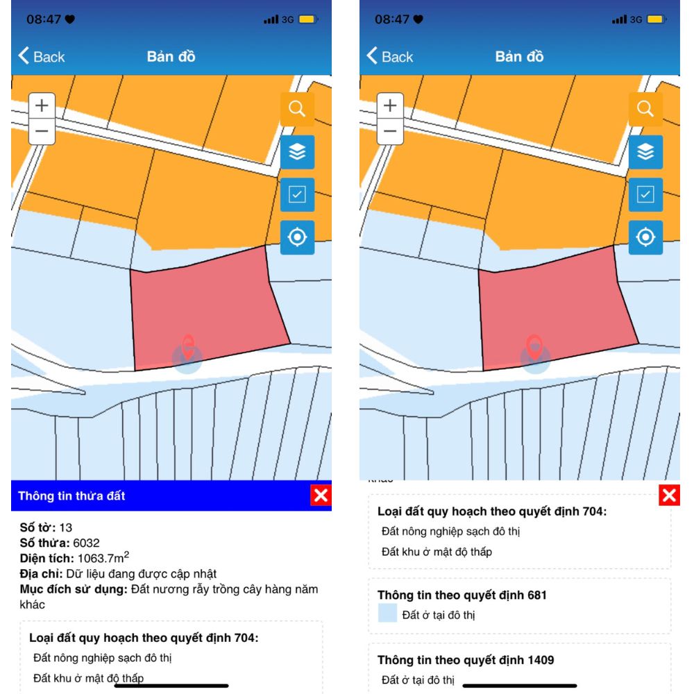 Diện tích: 352m2 và 330m2