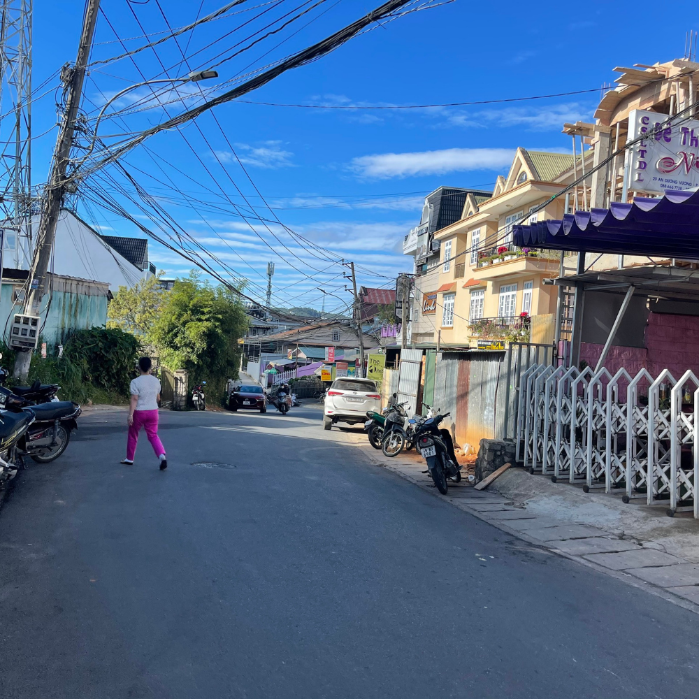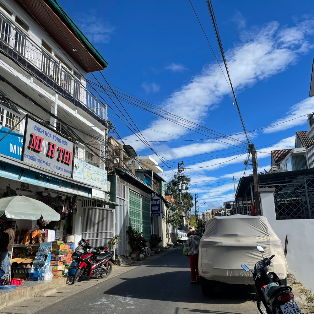- Tổng diện tích lên tới 200m2, mặt tiền ngang hơn 10m. Nằm ngay trục đường An Dương Vương giao Phan Đình Phùng, một trong những tuyến đường sầm uất nhất nhì Đà Lạt.