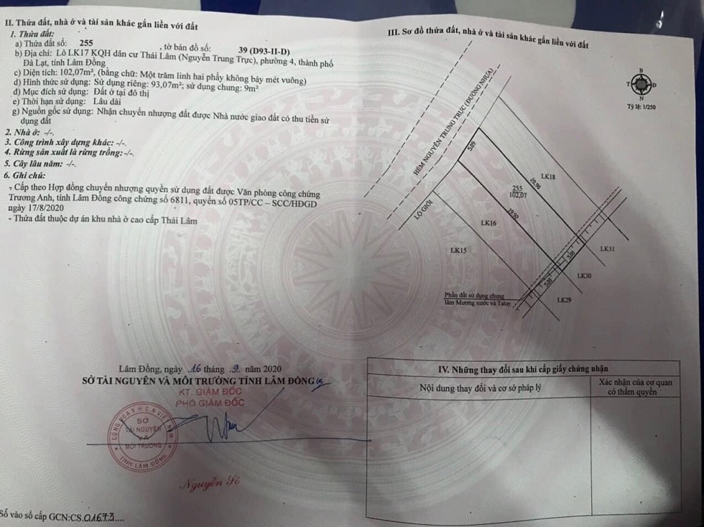Chính chủ cần bán đất Đường Thái Lâm P4 102m2 – Tp Đà Lạt, Đường ô tô vào tận nơi 5 m