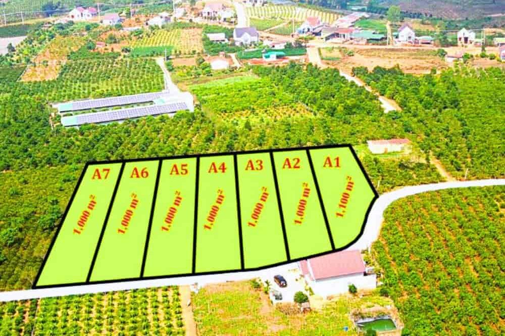 - Tổng diện tích: 7047m2 (chia thành 7 lô, mỗi lô 200m2 thổ cư)