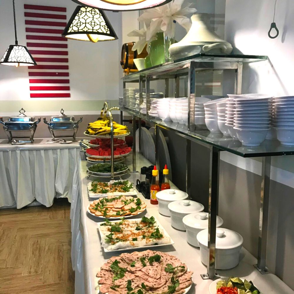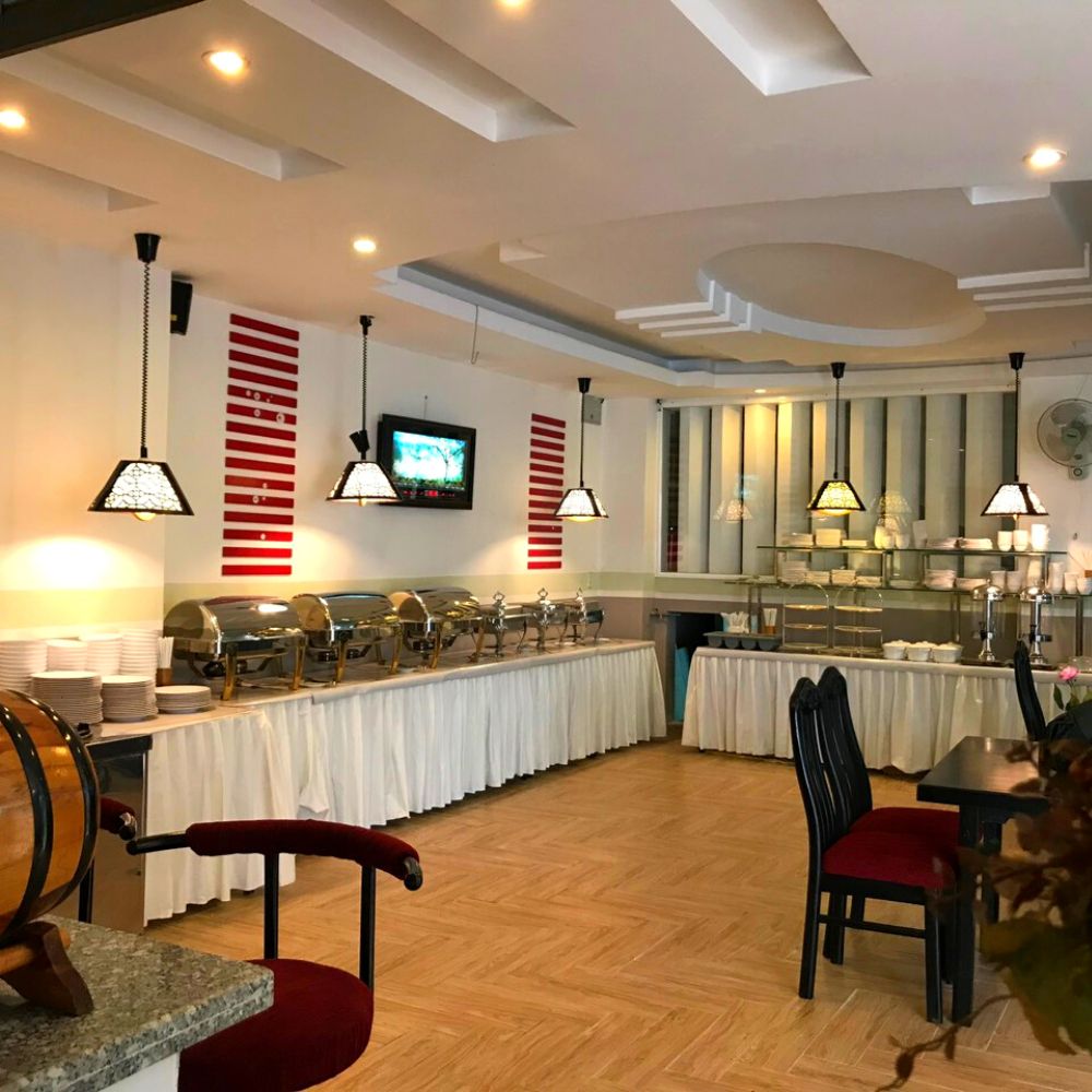 - Nhà hàng có quy mô sức chứa lên đến 60 khách phục vụ Buffet hoặc Alacarte và các chương trình tiệc theo nhu cầu của khách hàng.