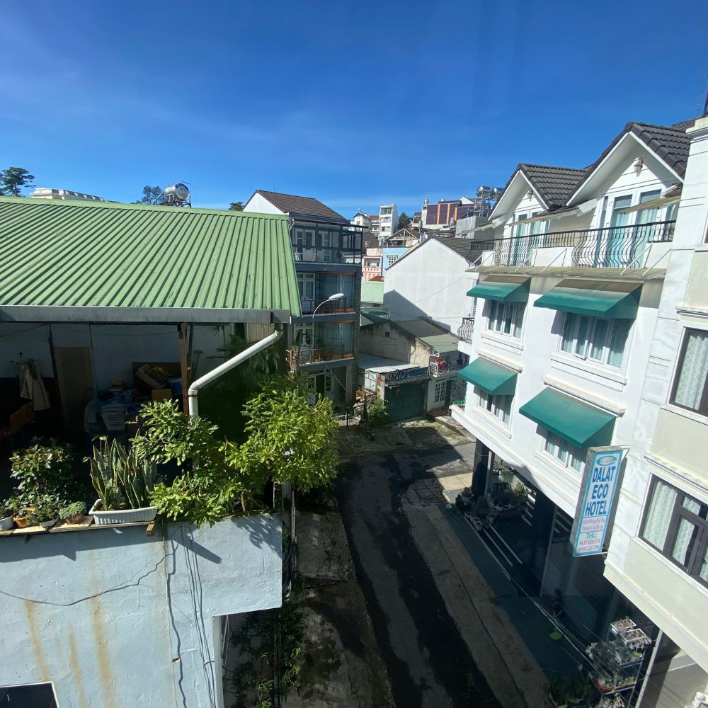 - Khách sạn tọa lạc tại trung tâm thành phố Đà Lạt, khu vực đông dân cư, an ninh, yên tĩnh và có nhiều tiện ích như khách sạn, các quán ăn uống, cây xăng, ngân hàng, nhà thờ, chợ, trường học các cấp.
