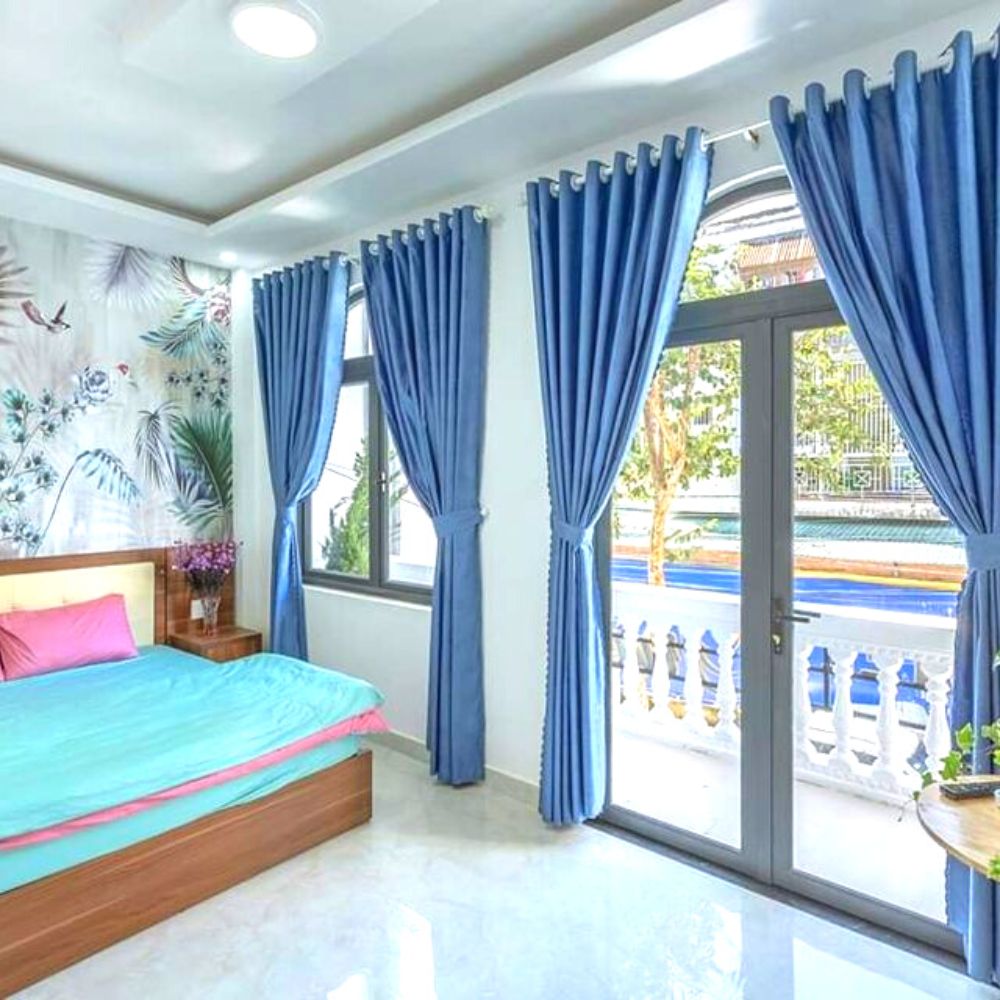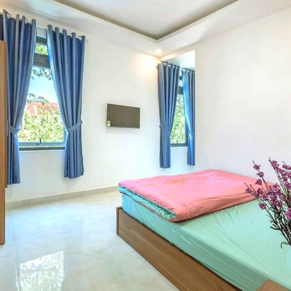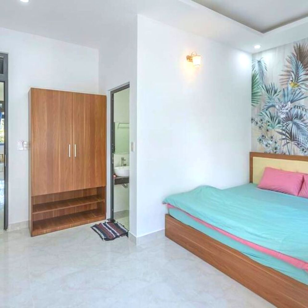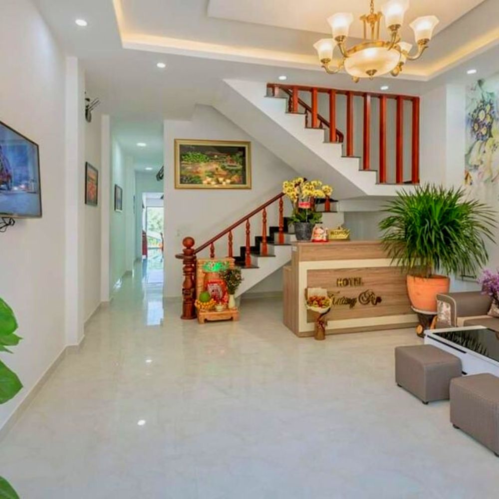 - Khách sạn với 12 phòng được thiết kế hiện đại, phía sau có một khoảng sân vườn rất lớn.