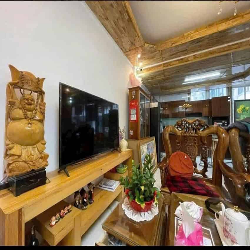 - Căn nhà có diện tích 58m2, thực tế 83m2. Nhà 01 trệt, 03 lầu. Có 1 sảnh cà phê, phòng khách và bếp, 05 phòng ngủ, 03 WC, sân để ô tô. Để lại nội thất cơ bản cho khách thiện chí.