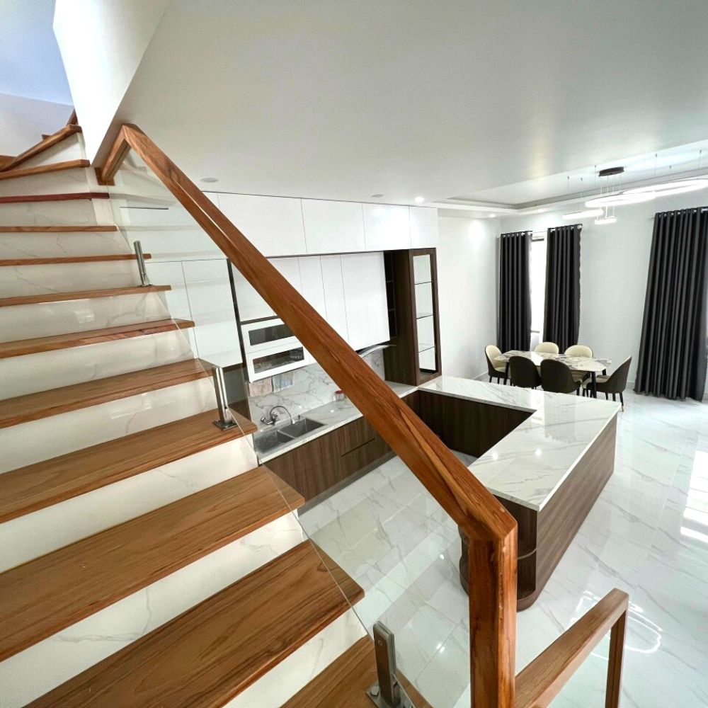 - Với diện tích 90m2 ngang 8,3m nở hậu 8,58m. Kết cấu 4 tầng gồm 5 phòng ngủ, 6wc , 1 phòng thờ, 1 sảnh sinh hoạt chung, 1 sân thượng , 1 Gara để xe, nội thất cơ bản , đồ gỗ sang xịn mịn.