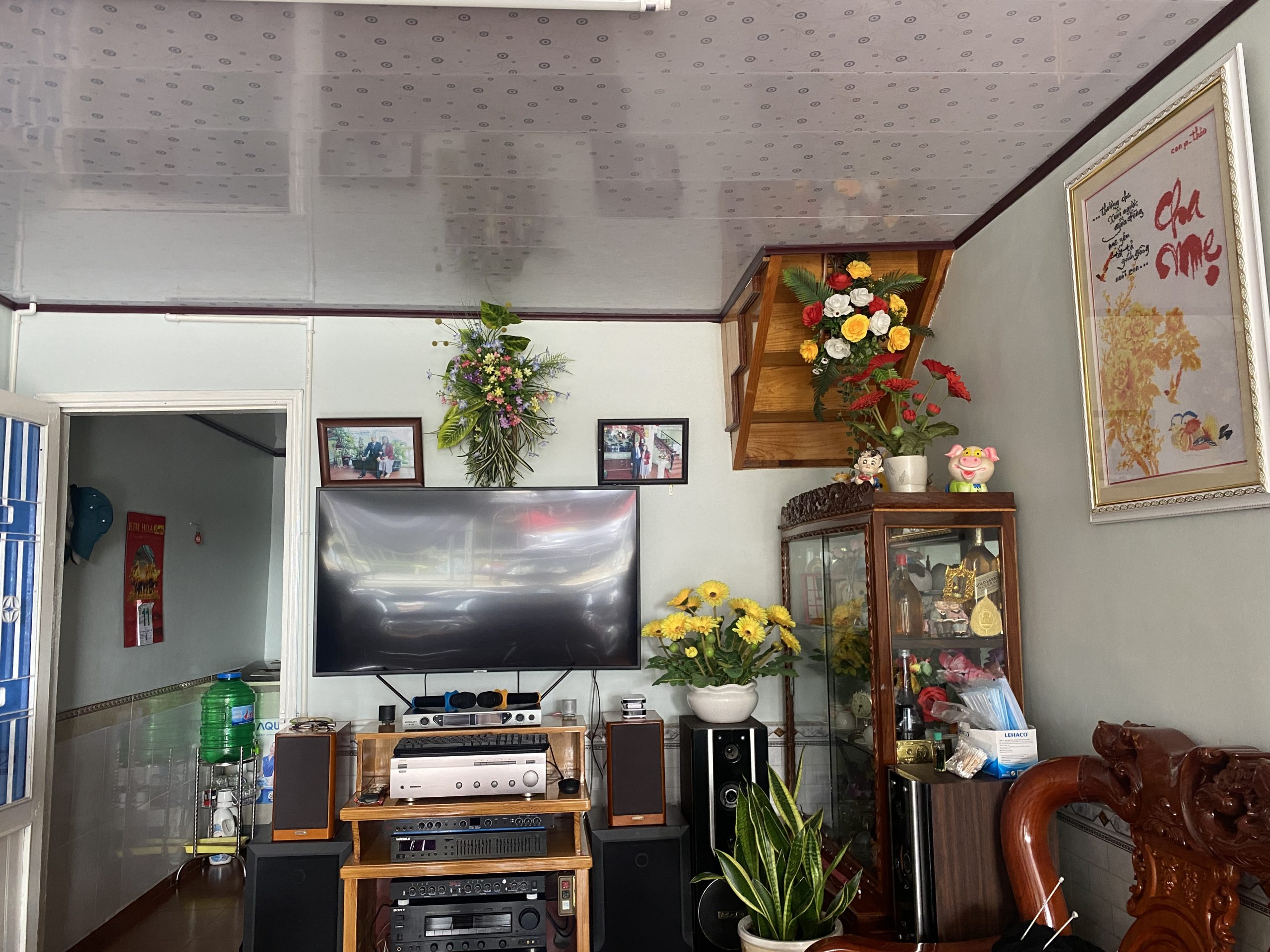 - Nhà với kết cấu 1 trệt 1 lầu được thiết kế khá bắt mắt, nhỏ gọn nhưng tạo cảm giác ấm cúng, gồm có 1 phòng khách, 1 bếp, 3 phòng ngủ, 1 phòng thờ, ban công ngắm cảnh được trang trí rất xinh.