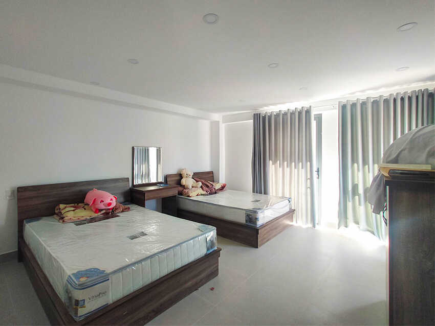 Mô tả: Nhà mới xây với phong cách hiện đại, diện tích 71m2, đã ghi nhận tài sản, sổ riêng xây dựng. Kết cấu 1 trệt, 2 lầu, 1 áp mái. Gồm 1 phòng khách, 5 phòng ngủ (đôi + đơn), 4 toilet, 1 bếp, ban công. Nhà 3 mặt tiền thông thoáng. Để lại toàn bộ nội thất, 5 phòng ngủ đều có TV. View đẹp, thoáng, khách hàng chỉ cần dọn vào ở ngay.