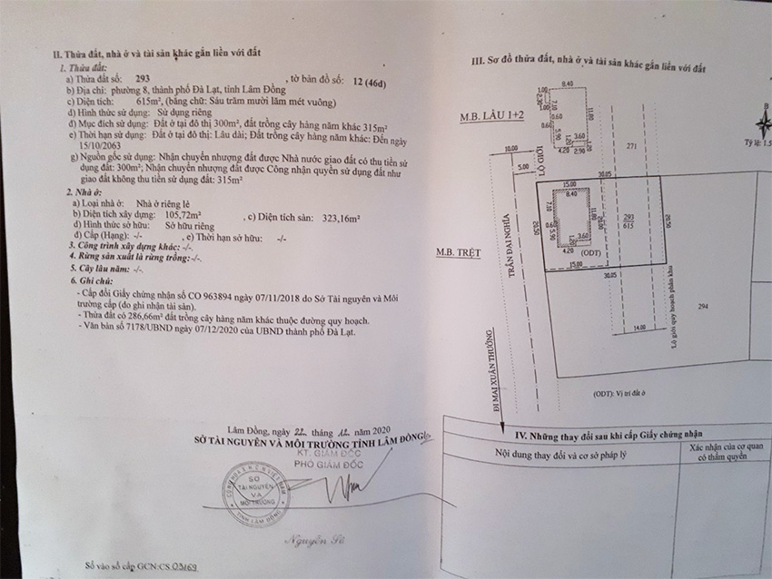 Diện tích: 615m (300m đất ở đô thị và 315m đất nông nghiệp)