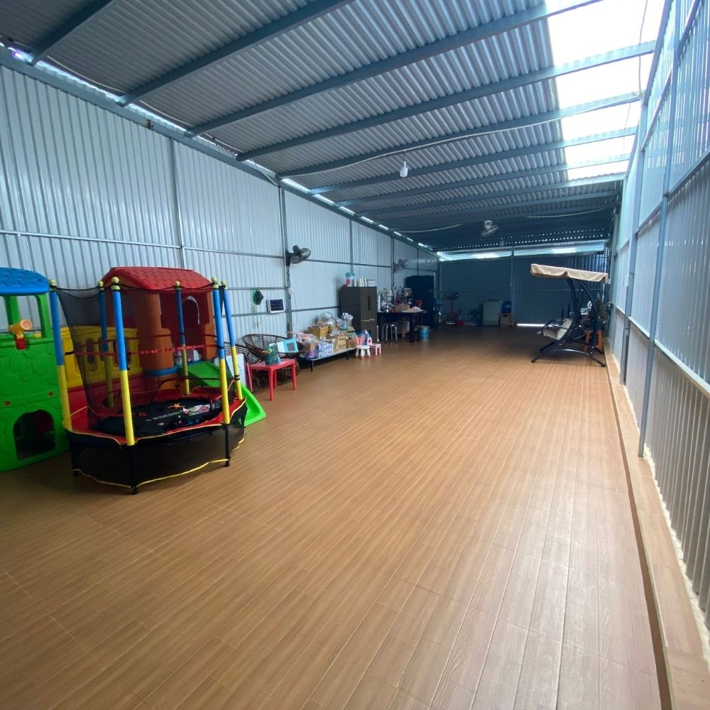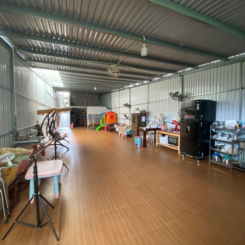 - Căn nhà có khoảng sân rộng phía trước có thể đậu xe ô tô, đặc biệt còn có 1 căn nhà tiền chế phía sau được thiết kế có kho chứa đồ, 1 không gian rộng rãi như 1 căn bếp riêng để tổ chức tiệc và 1 khoảng sân sau có thể chăm sóc cây cảnh.