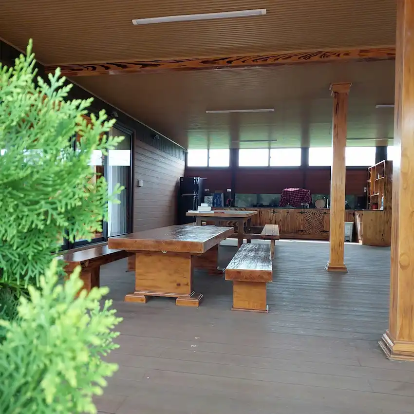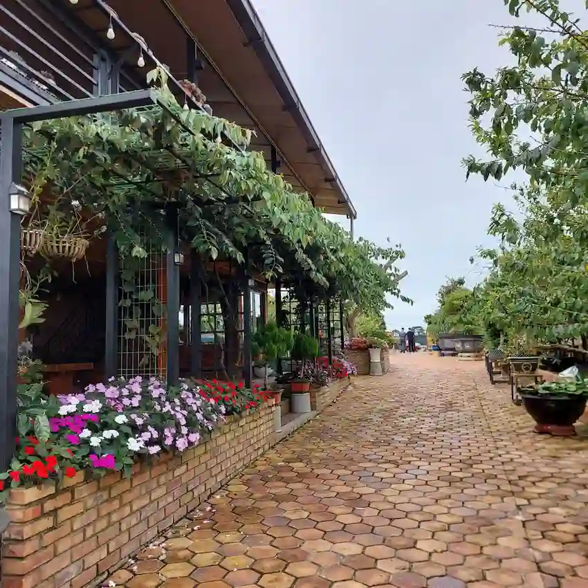 - Vườn có nhiều cây cảnh, bonsai và nhiều loại cây ăn trái.