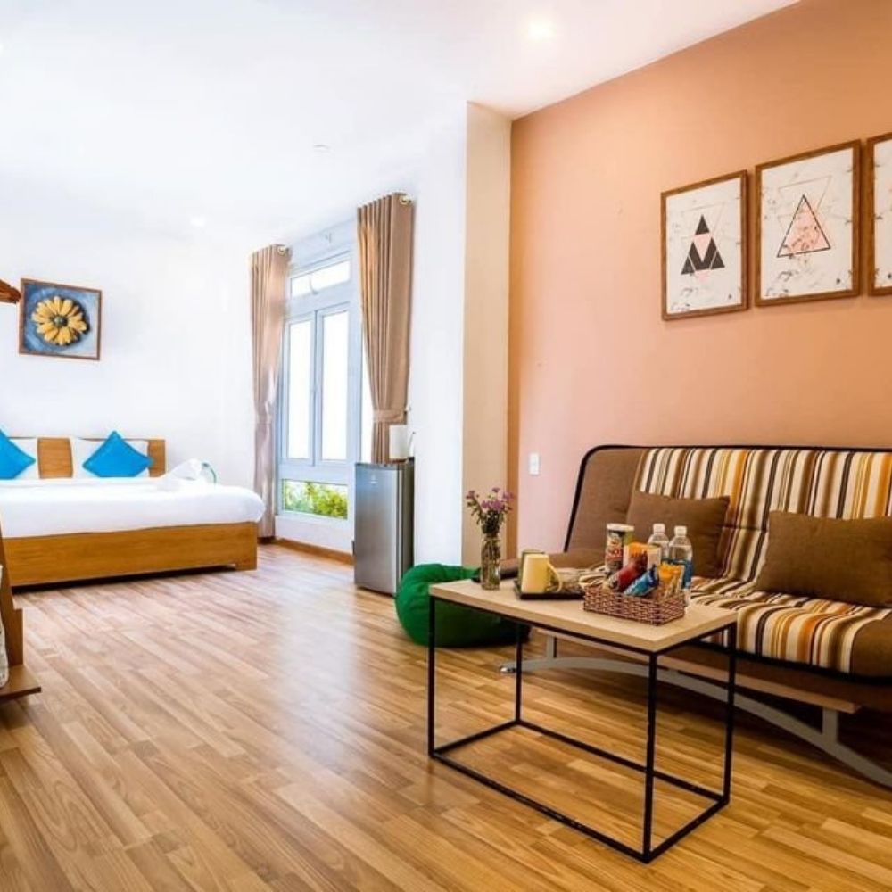 - Khách sạn nằm tại khu vực trung tâm của Đà Lạt, kèm theo sảnh tầng trệt rộng rãi có thể kinh doanh quán cà phê.