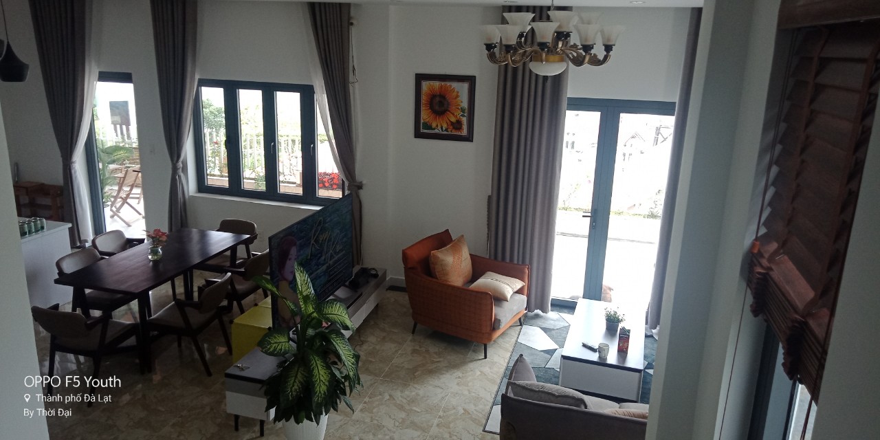 - Kết cấu nhà mới, phòng ốc được bố trí vô cùng khoa học -1 trệt, 1 lầu, 1 áp mái. Nhà bao gồm 1 phòng khách, 6 phòng ngủ, 1 bếp, 7 phòng vệ sinh, 1 gara và sân vườn rộng rãi. Để có thể làm nướng BBQ với thời tiết se lạnh của Đà Lạt. Từ nhà có thể ngắm được view rừng thông, view nhà lồng.