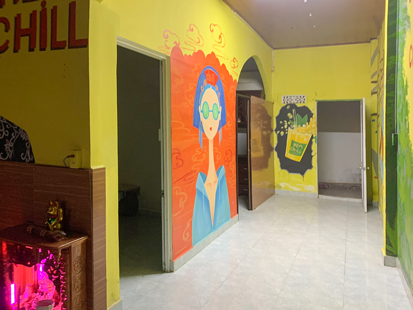 Điểm yếu bên trong nhà hơi xuống cấp và gác là sàn gỗ.