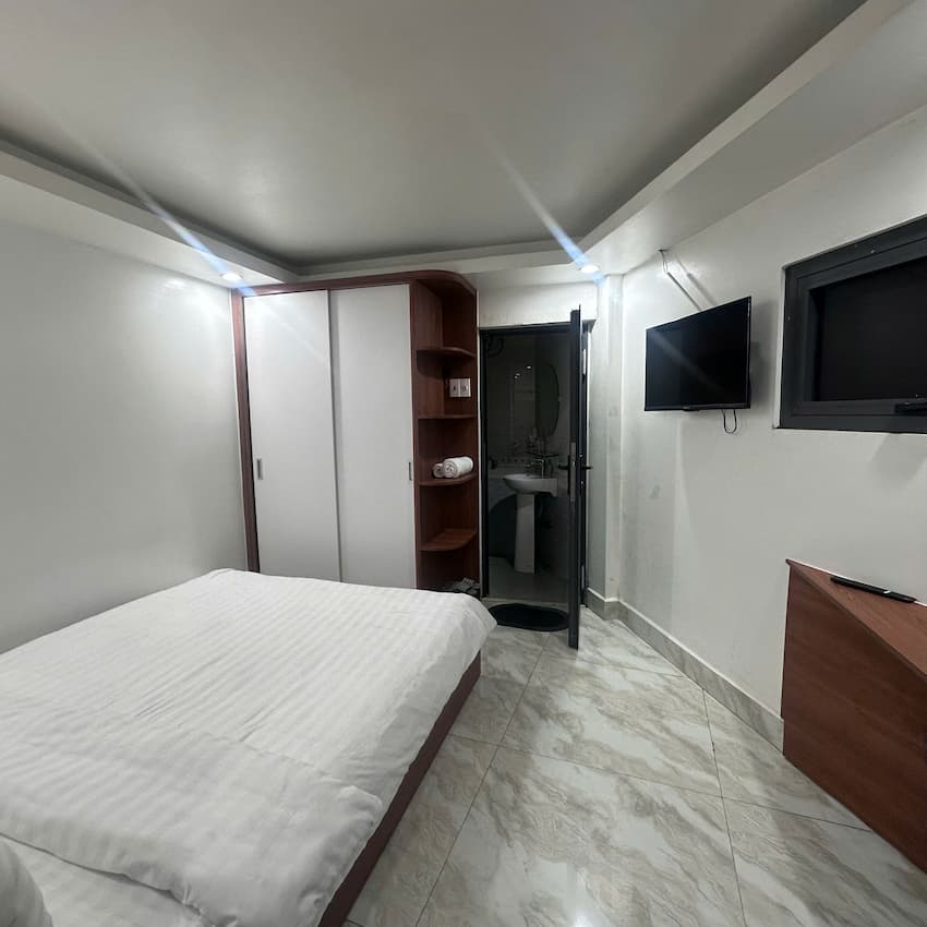 - Khách sạn với diện tích 90 m2, với kết cấu 1 hầm, 1 trệt, 3 lầu, 1 áp mái. Trong đó, có 1 lễ tân, 9 phòng ngủ, bếp, sân phơi đồ, thang máy. Khách sạn có sẵn nội thất, chủ bao giấy phép kinh doanh.